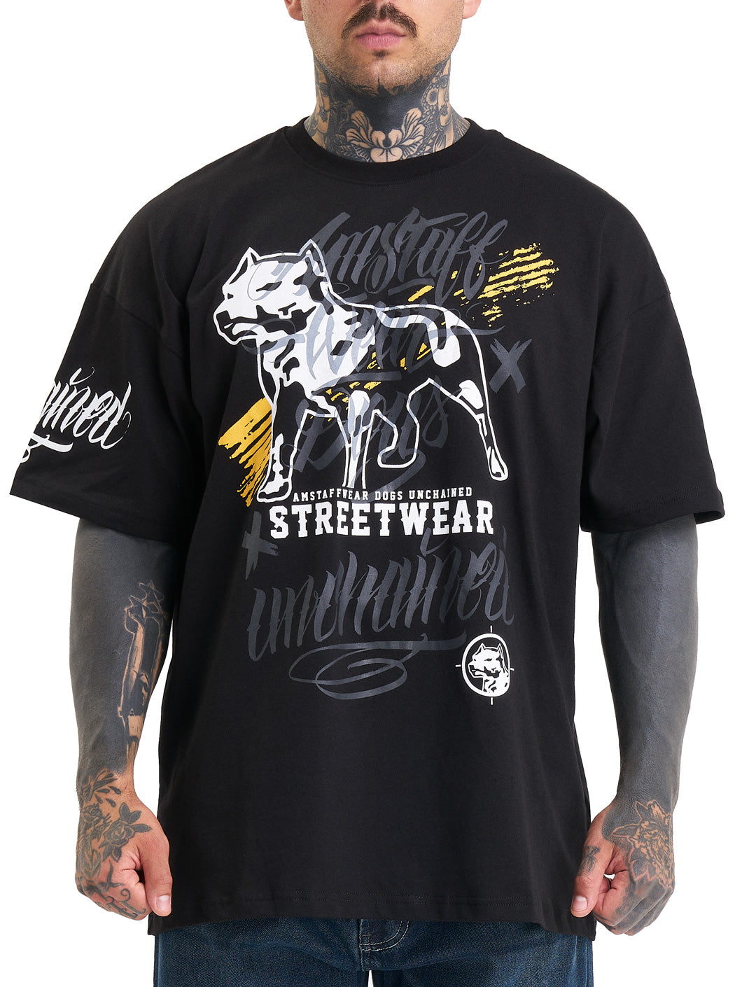- Markanter Amstaff Schriftzug am Ärmel.