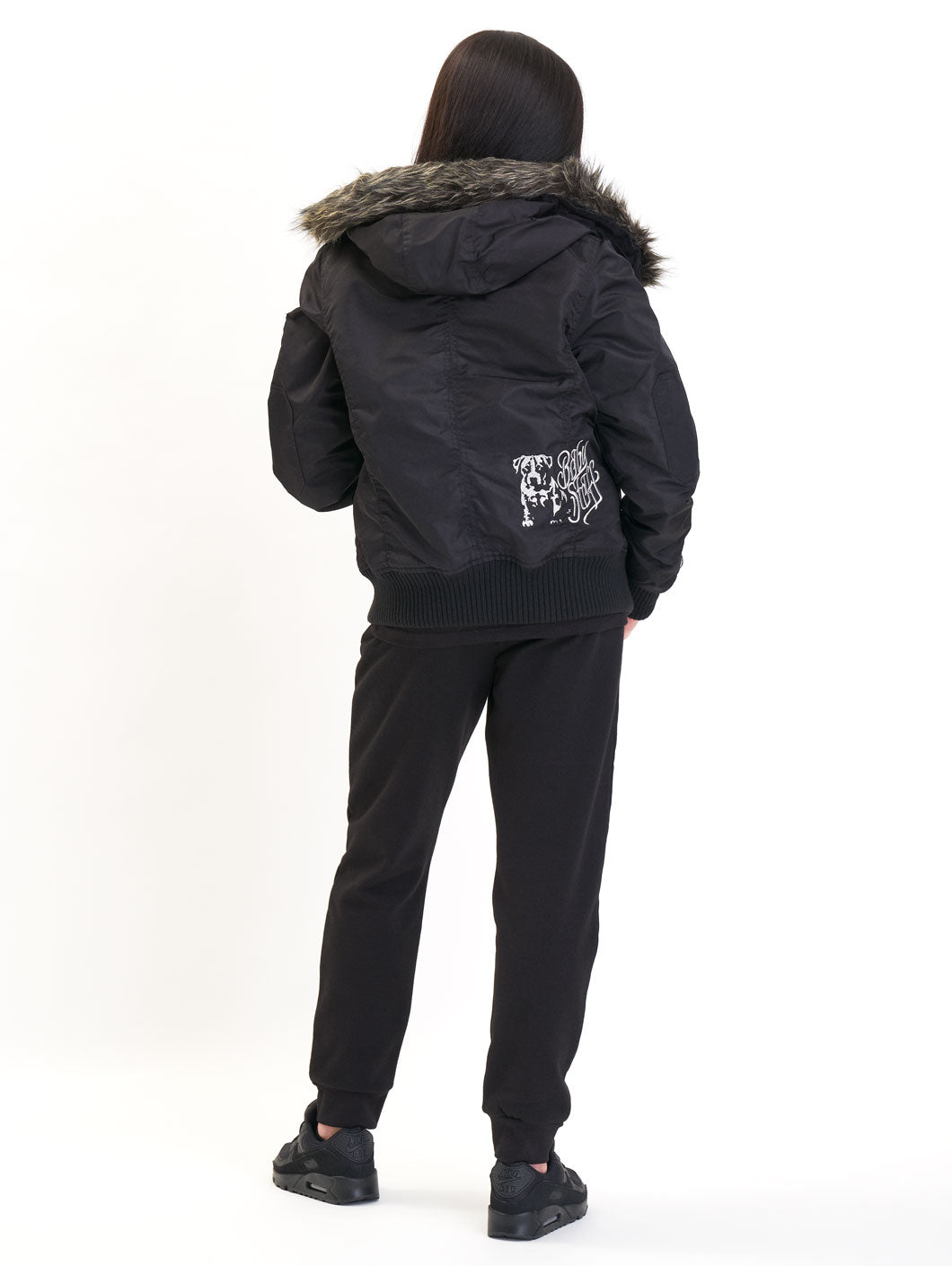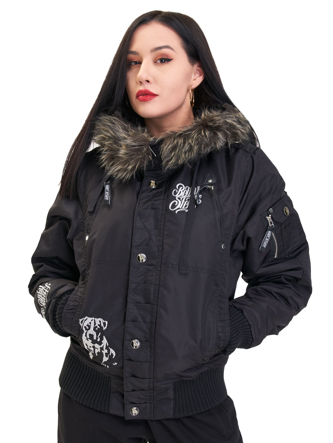 - Stylische schwarze Damenjacke mit Kapuze im Bomberjacken-Look